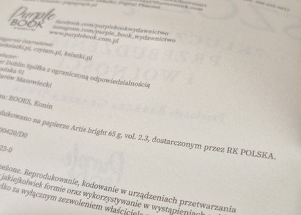 Najwyższej jakości papier publikacyjny z europejskiej papierni. Niezrównany w druku książek. Kremowy odcień papieru zapewnia komfort czytającemu nie męcząc oczu.